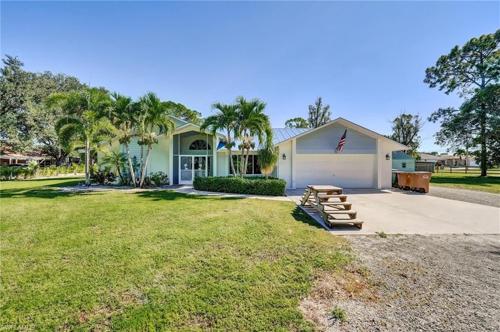 A Pleasure you'll treasure! 1.75 ACRES of pure country bliss. Located in unincorporated Lee County, 'The Woods allows for ROOM FOR YOUR RV, toys, and plenty of room for your dogs and horses to run with entire property surrounded by fence. This home has been UPDATED WITH ONLY THE BEST from tall maple cabinets with led lights above to upgraded Kalahari Desert granite counter tops, upgraded stainless appliances incl. slide in range w/ convection oven, 54 bottle wine cooler. Welcome home to main ent...A Pleasure you'll treasure! 1.75 ACRES of pure country bliss. Located in unincorporated Lee County, 'The Woods allows for ROOM FOR YOUR RV, toys, and plenty of room for your dogs and horses to run with entire property surrounded by fence. This home has been UPDATED WITH ONLY THE BEST from tall maple cabinets with led lights above to upgraded Kalahari Desert granite counter tops, upgraded stainless appliances incl. slide in range w/ convection oven, 54 bottle wine cooler. Welcome home to main entrance French doors to 20x20 TRAVERTINE marble floors, crown molding accents, impact windows, vaulted ceilings and impact multi sliding glass doors looking out to pool with screen cage and huge back yard with fire pit and 14' GAZEBO. The pool area is also pre-plumbed and wired for adding a summer kitchen. All the work is done here including mechanicals: newer a/c, whole house r/o with ultraviolet purification system, updated plumbing, newer 200 amp electric service with separate 50 amp for the extra 2 CAR GARAGE/barn w/loft and a separate 30 amp for RV hookups. Come visit this tree lined country retreat that is conveniently still close to everything.