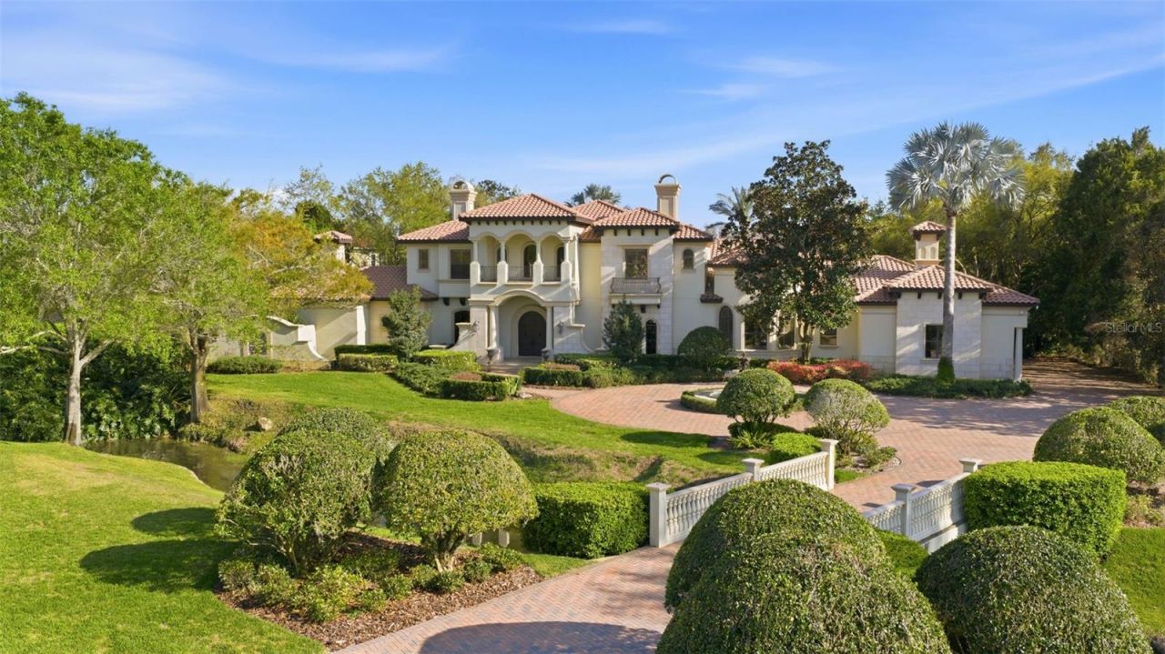Located within the gated Steeplechase community of Odessa, this lakefront estate spans more than three private acres and offers 6,749 square feet of thoughtfully designed living space. A tree-lined paver drive leads to a circular driveway with fountain and a stately fa?ade featuring arched windows and manicured landscaping. The property provides direct lake frontage and a high level of privacy within one of Tampa Bay's most established luxury neighborhoods. The residence includes five en-suite b...Located within the gated Steeplechase community of Odessa, this lakefront estate spans more than three private acres and offers 6,749 square feet of thoughtfully designed living space. A tree-lined paver drive leads to a circular driveway with fountain and a stately fa?ade featuring arched windows and manicured landscaping. The property provides direct lake frontage and a high level of privacy within one of Tampa Bay's most established luxury neighborhoods. The residence includes five en-suite bedrooms and six full baths, with a primary suite on the main level featuring a fireplace, flex space, and spa bath. Interior spaces are defined by soaring ceilings, marble floors, formal living and dining rooms, and a chef's kitchen equipped with Wolf and Sub-Zero appliances. Additional rooms include a wood-paneled office, climate-controlled wine cellar, and dedicated lounge, offering flexibility for work, entertaining, and private use. Outdoor living is arranged across multiple covered and open-air areas, including a columned lanai, pool and spa, and a fully equipped summer kitchen overlooking the lake. Notable features include a four-car garage with dual EV chargers, central vacuum system, dog-washing station, and whole-house generator. A well-appointed waterfront property combining acreage, security, and proximity to Tampa Bay amenities.