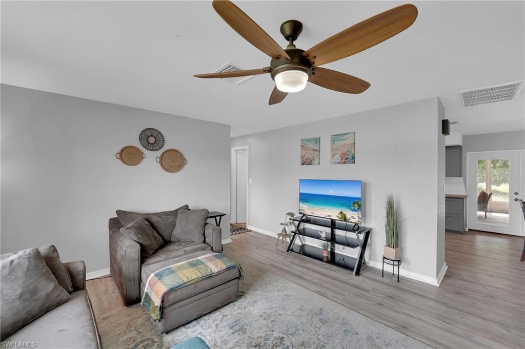 Fantastic central location just 2 minutes from the Midpoint Bridge, close to shopping, dining, and everyday conveniences. This updated 2 bedroom / 2 bathroom home with a 2-car garage and metal roof is offered turnkey and move-in ready-ideal as a full-time residence or a strong investment property.The remodeled kitchen features wood cabinetry, granite countertops, subway tile backsplash, and stainless-steel appliances. A spacious dining area opens through French doors to an oversized screened lan...Fantastic central location just 2 minutes from the Midpoint Bridge, close to shopping, dining, and everyday conveniences. This updated 2 bedroom / 2 bathroom home with a 2-car garage and metal roof is offered turnkey and move-in ready-ideal as a full-time residence or a strong investment property.The remodeled kitchen features wood cabinetry, granite countertops, subway tile backsplash, and stainless-steel appliances. A spacious dining area opens through French doors to an oversized screened lanai, perfect for indoor-outdoor living. New dishwasher in 2025 and new water heater in 2024.The huge backyard provides ample space to add a pool or create your dream outdoor oasis. Master bedroom includes a walk-in closet and an updated ensuite bathroom with a new shower and a quartz-top vanity. The guest bedroom includes a walk-in closet as well.Additional highlights include luxury vinyl flooring throughout, an oversized laundry room with abundant cabinetry and storage, and a 2-car attached garage. All assessments are paid.