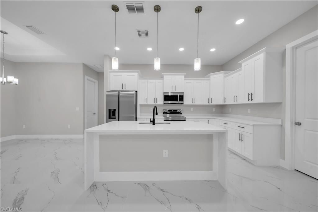 THIS HOME IS TRULY A MUST SEE!— Welcome to this stunning BRAND-NEW CONSTRUCTION home nestled in a quiet, friendly neighborhood in Lehigh Acres—where modern design meets everyday comfort. Offering 1,568 SQFT of thoughtfully planned living space, this home features 3 BEDROOMS plus a versatile DEN and 2.5 BATHROOMS, perfect for today’s lifestyle. The OPEN-CONCEPT KITCHEN is the heart of the home, showcasing GRANITE COUNTERTOPS, STAINLESS STEEL APPLIANCES, a s...THIS HOME IS TRULY A MUST SEE!— Welcome to this stunning BRAND-NEW CONSTRUCTION home nestled in a quiet, friendly neighborhood in Lehigh Acres—where modern design meets everyday comfort. Offering 1,568 SQFT of thoughtfully planned living space, this home features 3 BEDROOMS plus a versatile DEN and 2.5 BATHROOMS, perfect for today’s lifestyle. The OPEN-CONCEPT KITCHEN is the heart of the home, showcasing GRANITE COUNTERTOPS, STAINLESS STEEL APPLIANCES, a spacious PANTRY, and an ideal layout for entertaining or casual family meals. Granite countertops continue throughout the bathrooms and laundry room, creating a clean, cohesive, upscale feel. The LAUNDRY ROOM INCLUDES CABINETRY AND A WASHER & DRYER, making move-in effortless. The primary suite offers DUAL CLOSETS, while the DEN/OFFICE FEATURES ITS OWN HALF BATHROOM WITH DIRECT ACCESS TO THE EXTENDED LANAI—ideal for a home office, guest suite, or private retreat. With quality finishes, smart design, the PEACE OF MIND of new construction, and THE ADDED BENEFIT OF NOT BEING IN A FLOOD ZONE, this home is 100% MOVE-IN READY AND BUILT TO IMPRESS. SCHEDULE YOUR PRIVATE SHOWING TODAY BEFORE IT’S GONE!