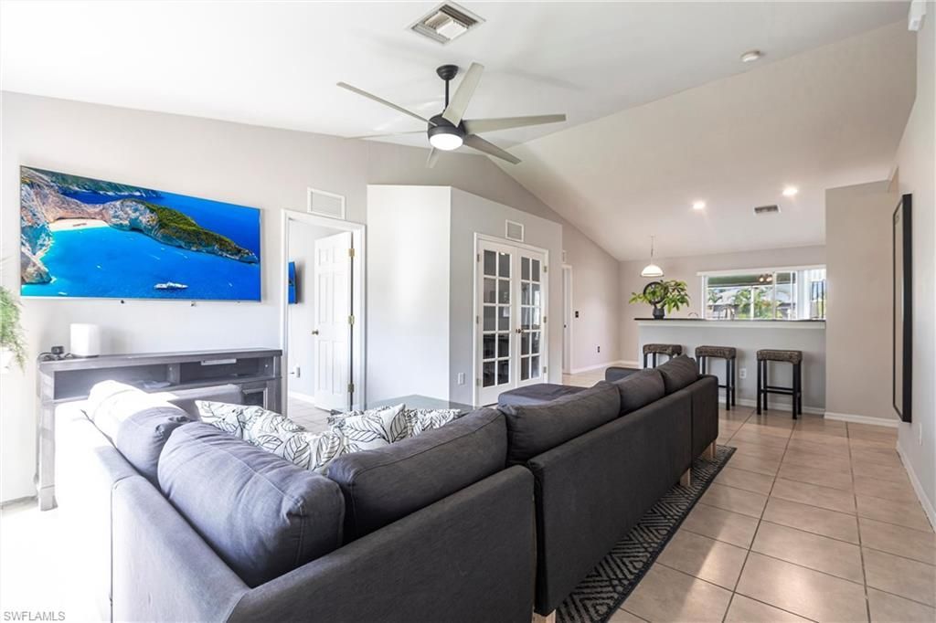 Welcome to this stunning, move-in-ready pool home located in the highly sought-after SW Cape Coral neighborhood. This beautifully maintained 3-bedroom plus den/2-bath home offers a perfect blend of spacious living for a comfortable Florida lifestyle. The kitchen is equipped complete with stainless steel appliances and tile flooring throughout. The Master suite offers a walk-in custom-built closet offering plenty of storage. Enjoy western exposure with amazing sunsets as you relax by the pool und...Welcome to this stunning, move-in-ready pool home located in the highly sought-after SW Cape Coral neighborhood. This beautifully maintained 3-bedroom plus den/2-bath home offers a perfect blend of spacious living for a comfortable Florida lifestyle. The kitchen is equipped complete with stainless steel appliances and tile flooring throughout. The Master suite offers a walk-in custom-built closet offering plenty of storage. Enjoy western exposure with amazing sunsets as you relax by the pool under a spacious screened lanai. Ample spcae for outside cooking on an oversized paver patio. Peace of mind comes with a new roof and solar heating system for the pool replaced in 2021. AC unit was replaced in 2019. NOT IN A FLOOD ZONE! This home is just minutes from vibrant downtown areas, shopping, dining, schools, and parks. Take a look at the video tour and schedule your showing today!